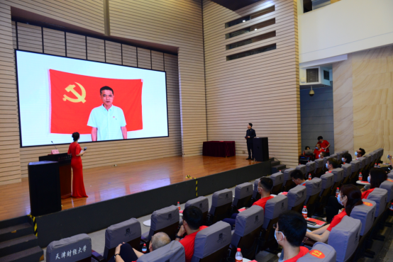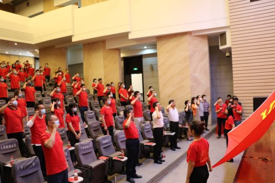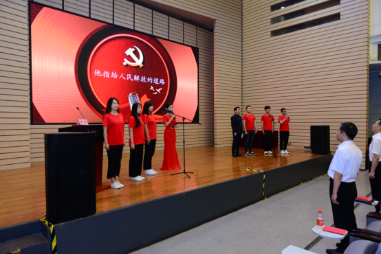 与会全体党员在校友代表的带领下,面对党旗重温入党誓词。历届校友通过VCR向党的生日献礼,送上对党最衷心的祝福。最后,全体人员合唱红歌《没有共产党就没有新中国》。
