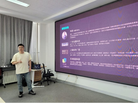 王宏力总经理介绍了企业的发展现状,并从一站式定制服务、新媒体营销基地、财税数字化三个方面详细地介绍了公司的业务板块,希望通过校企合作为双方搭建更好的发展平台。韩瑜副总经理介绍了企业的新媒体营销业务板块,从新媒体的内容制作、效果广告、内容运营等方面进行了详细地分析,希望有更多的学生能参与到企业的业务中来。高小琪副总经理从四个模块介绍了企业财务对企业运营发挥的作用,指出经营数据对经营决策有着重要的影响,通过数字化经营管理可以有效降低企业的决策风险,助力企业行稳致远。