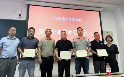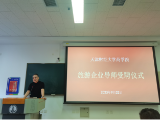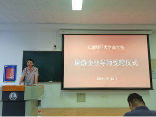 天津泰达文化旅游集团有限公司董事长张锡刚先生在介绍了公司业务之后表示,作为校外导师会以专业的态度和知识为学生提供指导和帮助,与校方共同提升教学质量,培养具备实践能力的旅游业人才。天津酒博印象博物馆总经理、中青旅(天津)国际旅行社副经理康宁先生作为优秀校友,讲述了自己的从业经历,希望同学们热爱自己所学的专业领域,积极投身于旅游业,并欢迎师生前往企业参观学习。携程旅行网门票活动业务部区域经理王立伟先生也是旅游系优秀校友,他分享了自己从导游开始的对旅游行业的感受与收获,强调在工作中要从基础做起,学习多方面知识充实自己,才能不断进步。天津泰达文化旅游集团有限公司总经理张子康先生认为,旅游业作为综合性服务行业是复杂而高级的,应该关注现代旅游业知识化、智能化的发展趋势。同时他提出,企业愿意支持同学们的好创意,给予大学生入职或创业的机会。