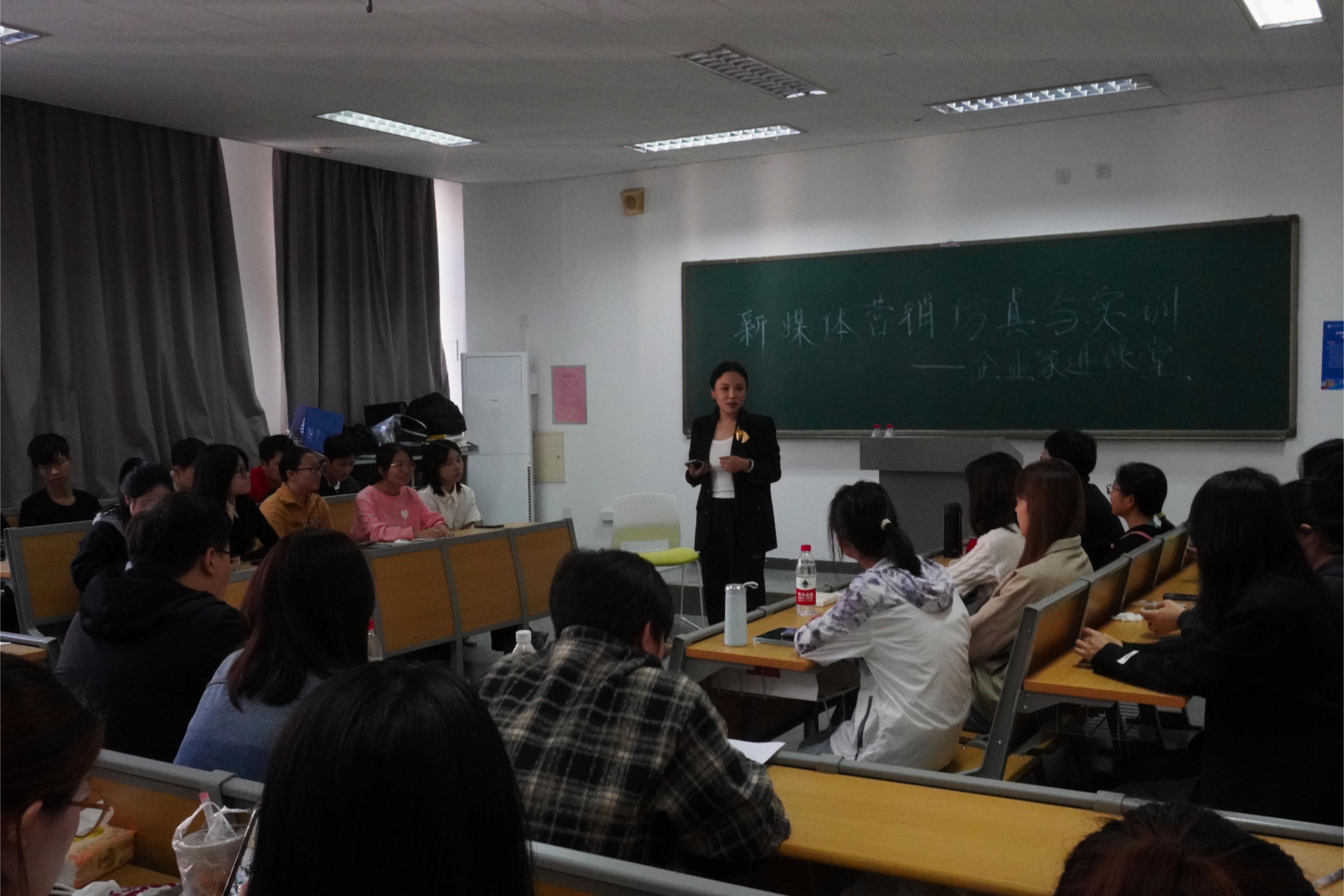 她通过分享餐饮行业营销前沿、新媒体平台用户画像、自媒体内容发布和变现逻辑,并就具体案例展开互动交流,学生们对餐饮行业的新媒体营销实践有了较为深入的理解和认知,加深了理论知识的理解和应用。