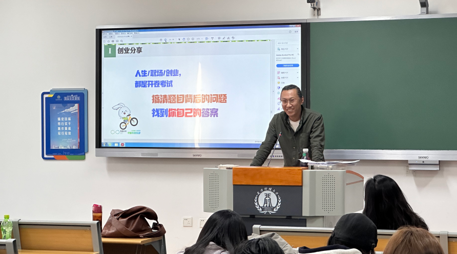 市场营销系《创业基础》课堂上,悦骑公社创始人黄亮(“不凡的BOSS”企业家)为学生们带来了一场精彩讲座“悦骑公社——让运动见证成长”。黄总巧妙地以考试类型引出讨论,深入探讨了创业的核心要素:热情、情怀和底层逻辑。他分享了自己如何在疫情逆境中坚守创业初心,强调了勇于迈出第一步的重要性,并展示了如何根据幼儿成长需求建立标准化体系,以推广骑行乐趣。黄总鼓励大家深入挖掘问题本质,将人生视为一场开卷考试,以创业精神推动自我成长。通过实际案例,他强调了理解问题背后真正意图的重要性,指导同学们如何在创业旅程中找到自己的答案,激发了大家的创业热情并提供了深刻的启示。