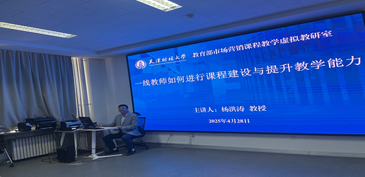 教师进行专题讲座。杨教授身兼数职,不仅是国家首批课程思政教学名师、教学团队负责人,还是国家级教学平台-教育部市场营销课程教学虚拟教研室的负责人,同时也是霍英东全国青年教师奖获得者。其丰富的学术经历与卓越成就,为本次讲座奠定了高水准的基础。
