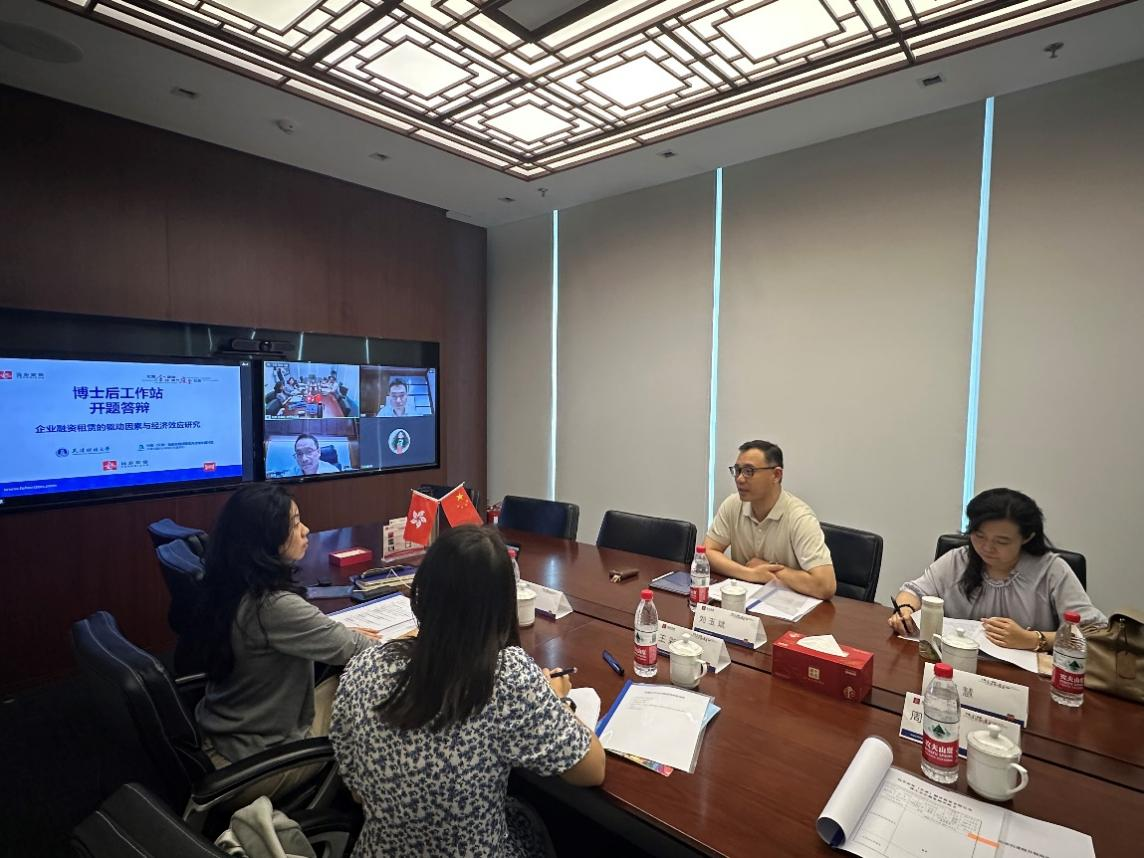 远东宏信(天津)融资租赁公司负责人对博士后开题工作予以高度肯定,并表达了深化校企合作的强烈意愿与坚定信心。刘玉斌表示本次联合培养博士后是学校推动产学研融合、培养高层次应用型人才的重要实践,未来将继续依托学校的学科优势与科研资源,为企业发展提供智力支持;同时期望通过与远东宏信的深度协作,进一步提升人才培养的针对性与实效性。孙涛指出,远东宏信始终将人才培养与技术创新作为核心竞争力的重要支撑,未来将继续加大与高校的合作力度,共同推动融资租赁领域的理论创新与实践突破,为行业高质量发展贡献力量。