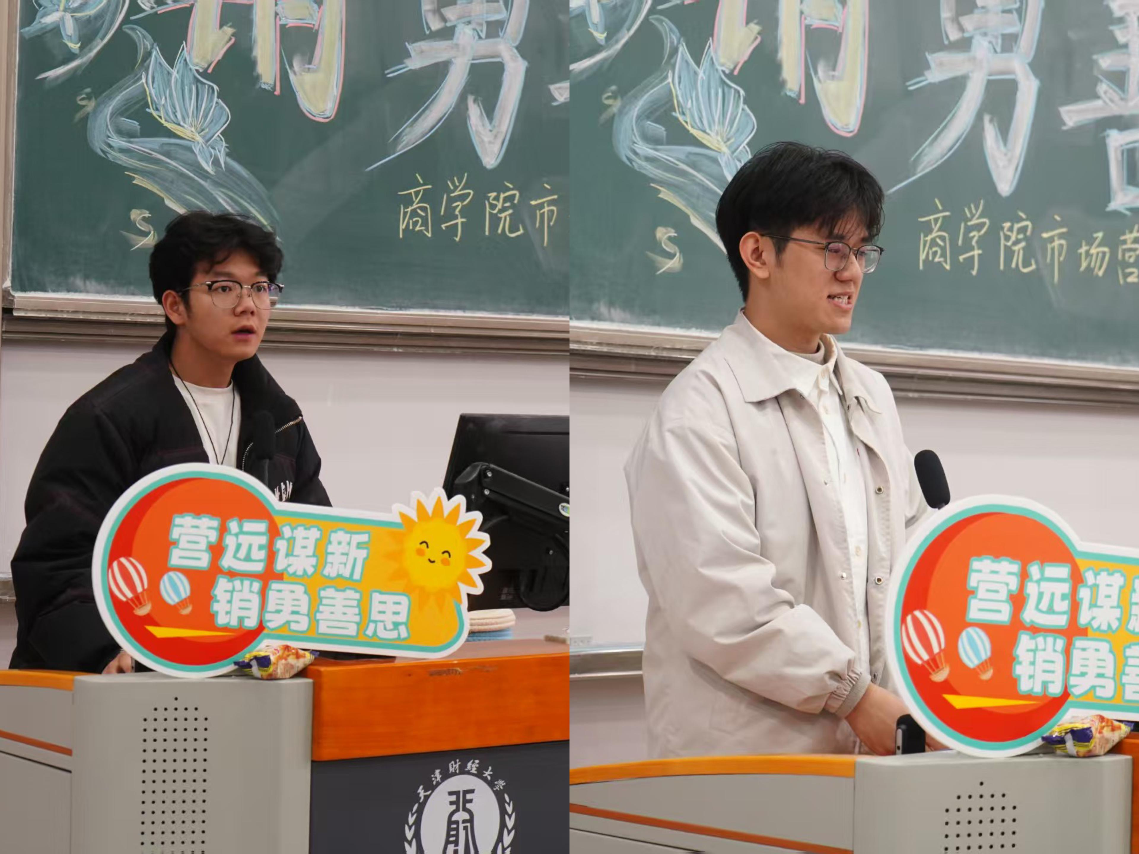 在学长分享环节,营销2301班刘缙、广告2201班樊璟分别就”实践成长”与”学术探索”两大主题,为新生描绘可感可知的发展路径;两轮”学长抽奖”随之奉上二十份惊喜礼品,将气氛推向新的高潮。