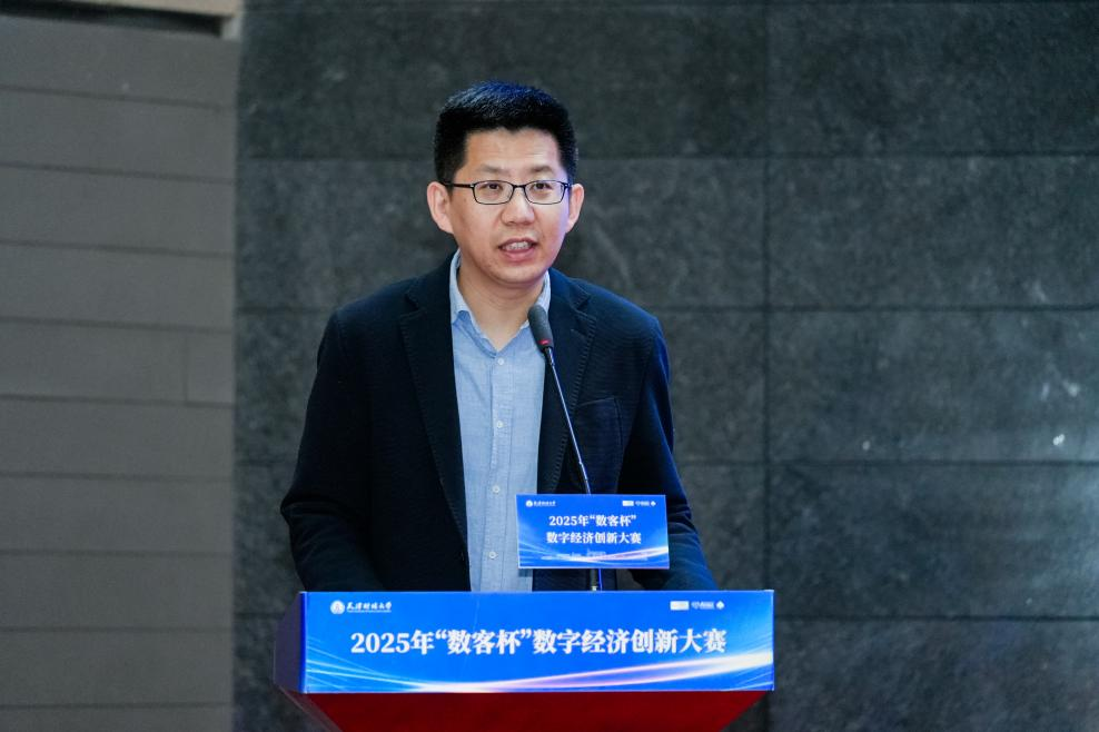 许晶副处长代表天津市教委向大赛的顺利举办表示热烈祝贺,他指出,大赛始终坚持“企业出题,真题真做”的特色,为近千名学子搭建了创新舞台,为产业输送了兼具理论与实践能力的青年人才。本届大赛设置的三大赛道精准诠释了学科竞赛的高阶要求,是教育服务产业、人才支撑发展的生动实践,有力助推了数智商学顶尖学科的建设。