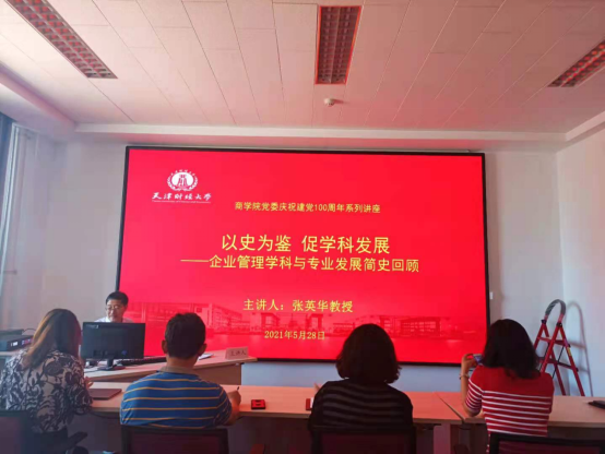 为庆祝中国共产党成立100周年,深入贯彻党史学习教育,樱花动漫 于5月28日邀请到原院长张英华教授为师生作“以史为鉴,促学科发展——企业管理学科与专业发展简史回顾”专题讲座。