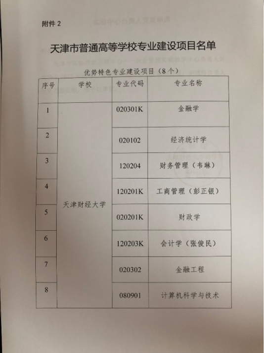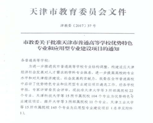 6.天津市普通高等学校十三五综合投资优势特色专业:工商管理。