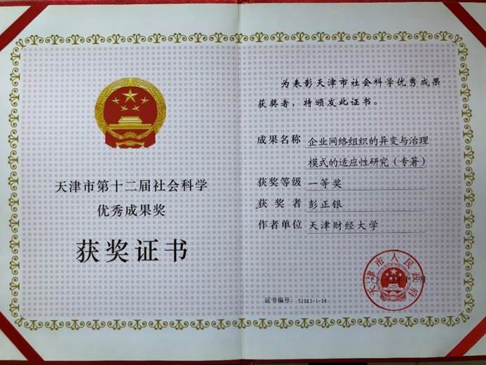 11.天津市第十二届社会科学优秀成果奖,天津市人民政府;