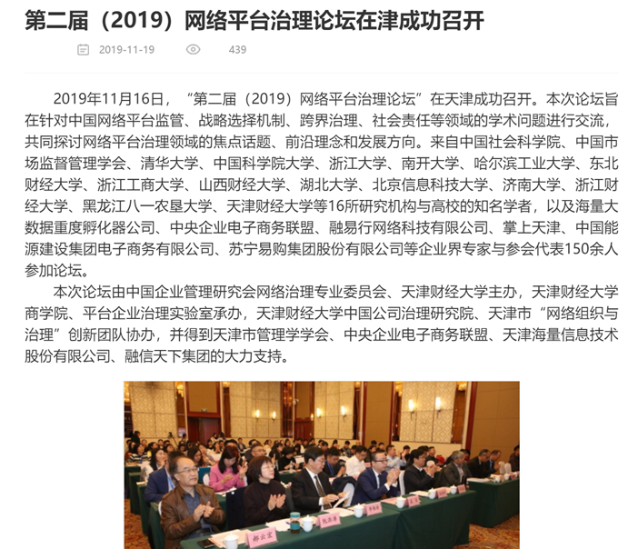 6.承办第二届(2019)网络平台治理论坛并发布《中国网络平台治理研究报告(2019)》,多家媒体对此次论坛进行了报道;