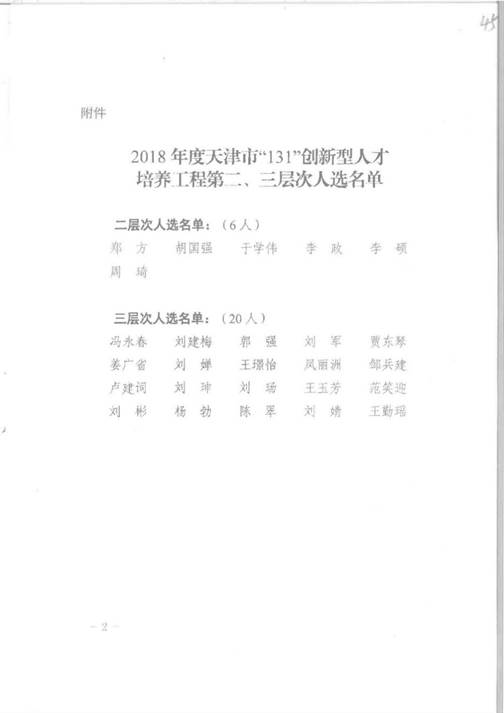15.天津市“131”创新型培养工程第二层次,天津市教育委员会;
