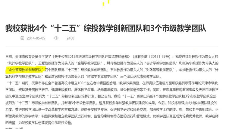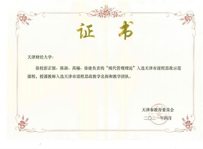 6.天津市教学团队“人力资源管理教学团队”,天津市教育委员会;