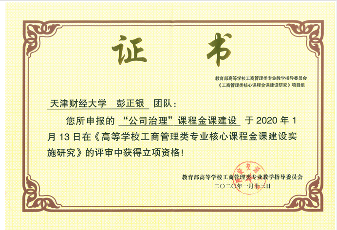 4.高等学校工商管理专业核心课程金科建设实施研究《公司治理》;