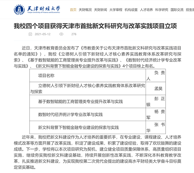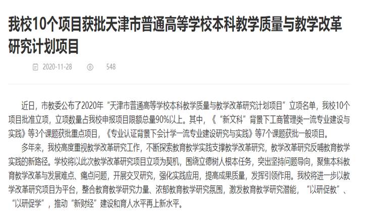 4.顶尖学科培育计划:“数智时代的工商管理学科建设”争创天津市顶尖学科培育计划项目。