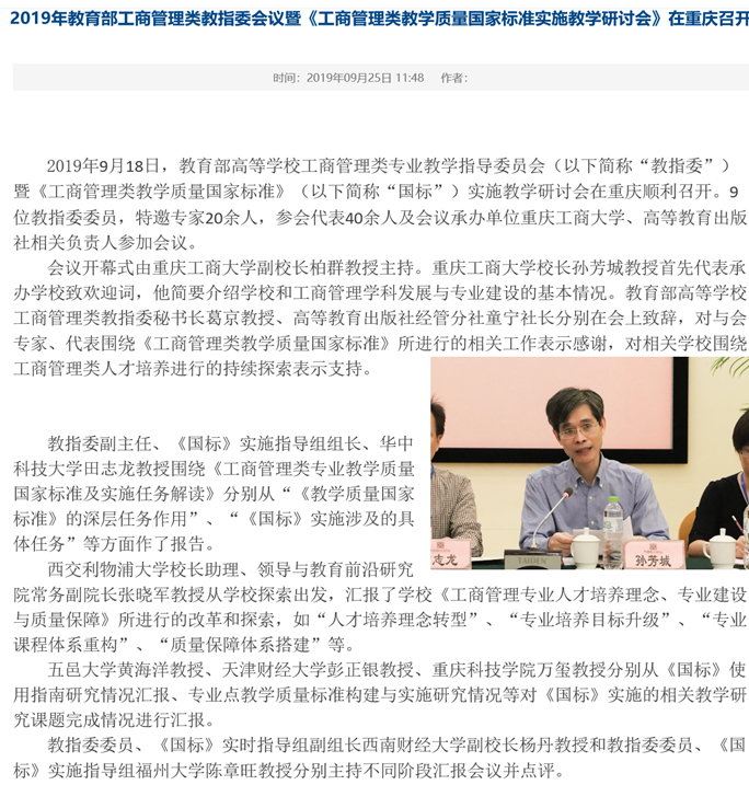 2.参加教指委暨《工商管理类教学质量国家标准》教学研讨会并进行汇报;