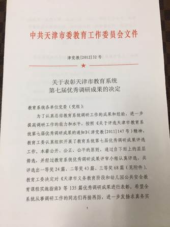 14.天津市教育系统第七届优秀调研成果奖,天津市教育委员会;