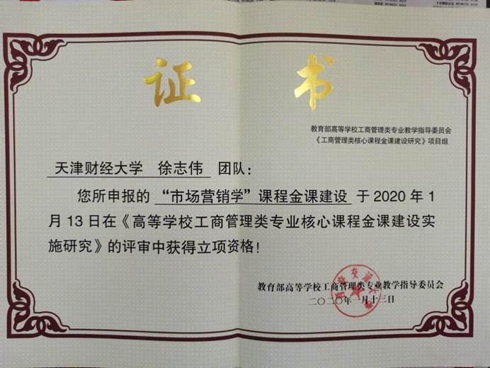 5.高等学校工商管理专业核心课程金科建设实施研究《市场营销学》;