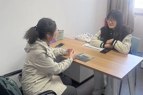 的老师与学生面对面、一对一交流。