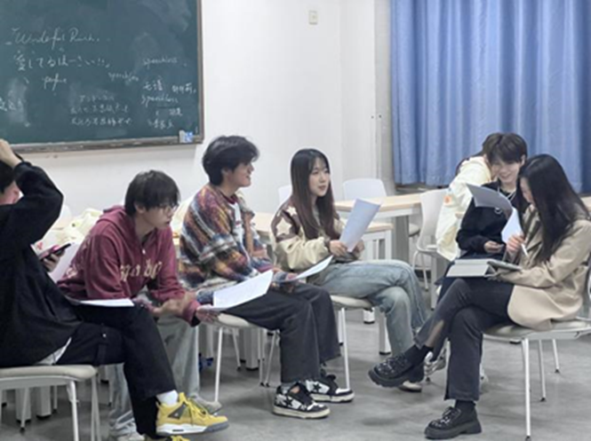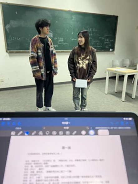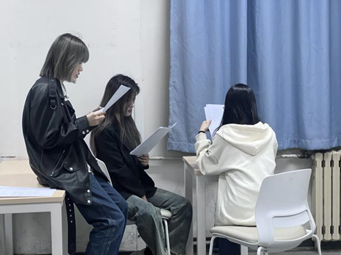 在剧本创作完成后,某某话剧社就紧锣密鼓地投入排练当中,每一位同学都认真负责,感受并扮演好自己的角色。