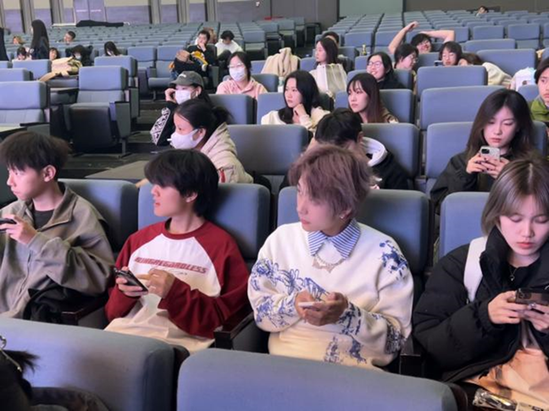 到达G座报告厅等待演出时,同学们都既紧张又兴奋,一遍一遍熟悉台词和走场,希望可以发挥出最好的状态。
