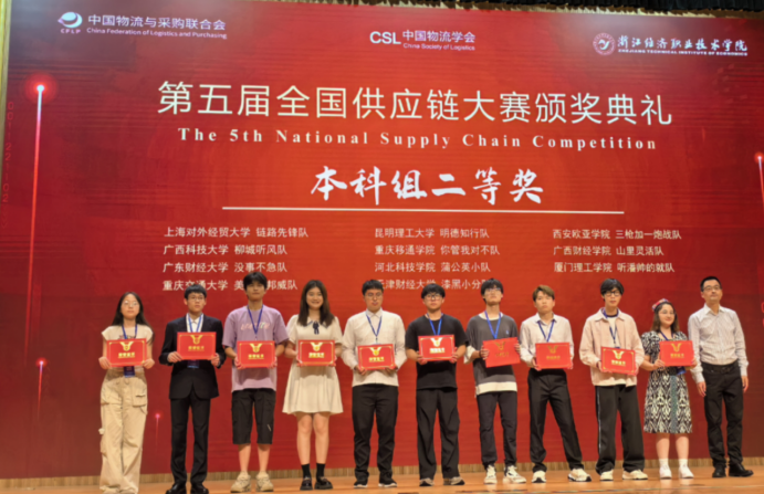 物流与供应链管理系学生黎官武、季玉娟、周杰、顾佳瑶在夏良杰老师和于霞老师的指导下,与不同高校的强劲对手同台竞技,展现了出色的应变能力和团队合作精神。经过四个小时高强度、高密度的现场模拟操作供应链运营实战系统,应对竞赛中生产、销售、配送、采购等供应链环节中出现的各种问题和突发事件,克服竞争压力、资金熔断风险、牛鞭效应逐级放大等多重困难,搭建出一条协同、高效、完整、贯通的前后端全供应链,与总决赛的60支队伍进行激烈的角逐后,最终获得本科组二等奖。